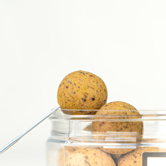 Boilie-Zusammensetzung: Boilies bestehen in der Regel aus einer Mischung von Zutaten wie Eiern, Mehl, und speziellen Zutaten wie Aromen, Lockstoffen und anderen Zusatzstoffen. Die genaue Rezeptur kann von Marke zu Marke unterschiedlich sein.
